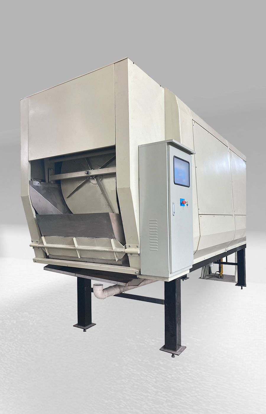 工作原理:滾筒螺旋葉片旋轉壓縮儲存。滾筒和葉片采用SUS304不銹鋼板制造,耐腐蝕性好。當垃圾進入滾筒內,滾筒旋轉,在螺旋葉片作用下壓縮垃圾...